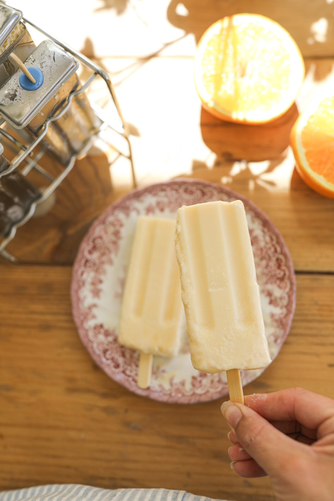These orange creamsicle popsicles not only taste mouthwateringly delicious— but they have a secret ingredient in them that contains 50 grams of protein— cottage cheese! You would never guess by the flavor of these popsicles that the creamy base is made from cottage cheese. You can also add in colostrum, collagen, or even a scoop of your favorite unflavored or vanilla protein powder to boost the protein content even more in these popsicles.