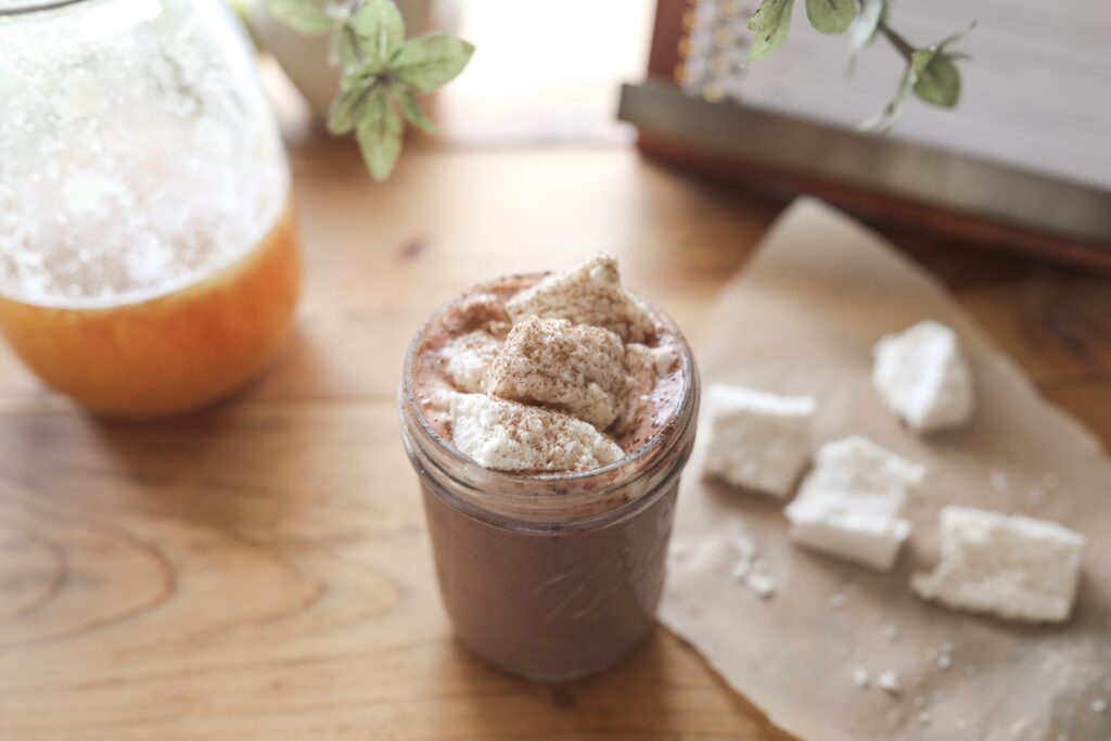 Most hot chocolate packets that you can pick up at the grocery store contain unhealthy ingredients– like high fructose corn syrup, hydrogenated oi,l and genetically modified ingredients. My hot chocolate recipe, on the other hand, is made from simple, real, and healthy ingredients. So you can not only enjoy the indulgent flavor of hot chocolate, but you can feel good about the ingredients inside!