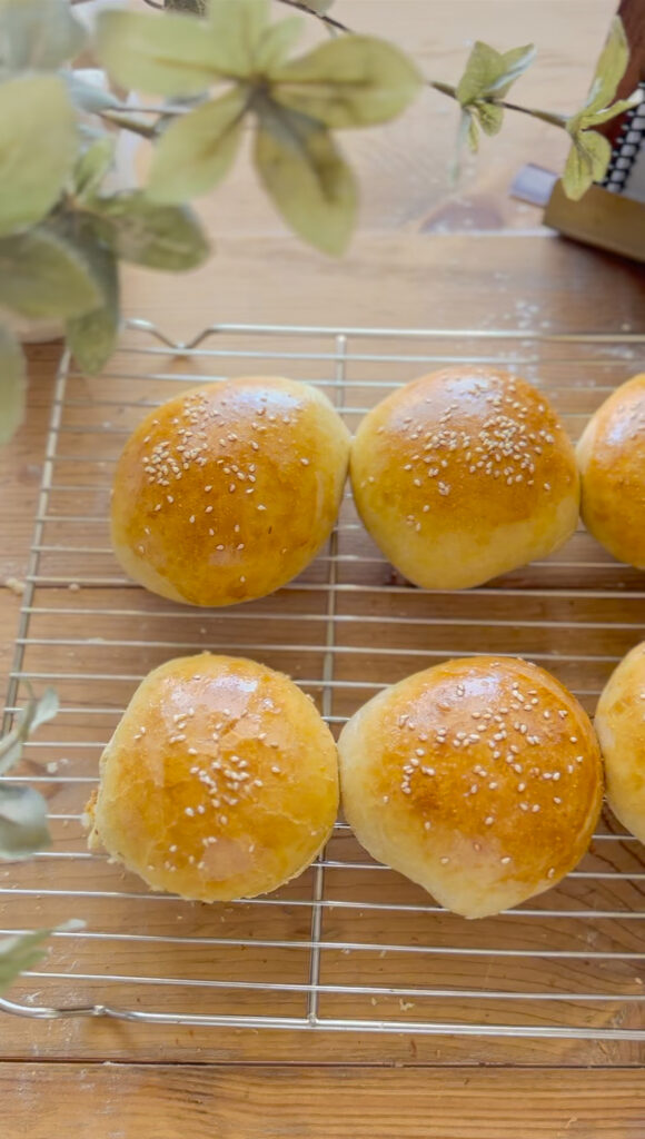 - Bake the buns in the preheated oven for about 12-15 minutes or until they turn golden brown.